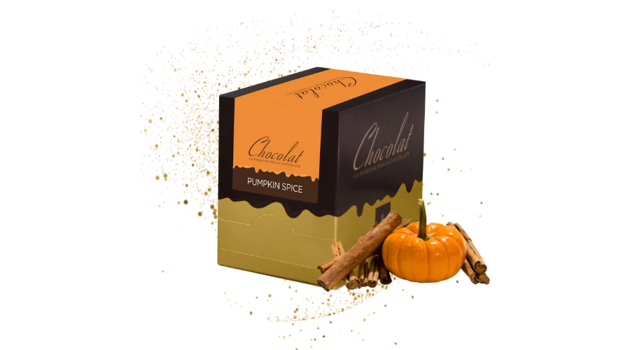Őszi hangulatú, pumpkin spice ízesítésű olasz forrócsokoládé — a sütőtök-pite fűszereinek (fahéj, szerecsendió, szegfűszeg, gyömbér) és a lágy csokoládé gazdag harmóniájával. Ideális szezonális különlegesség otthonra és vendéglátóhelyeknek.